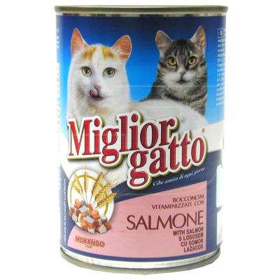 Kediler için eşsiz lezzeti ile dengeli bir beslenme sağlayan, içeriği yüksek kalitede ham maddeler ile oluşturulmuş sos içerisinde, somon balığı taneli konserve kedi mamasıdır.