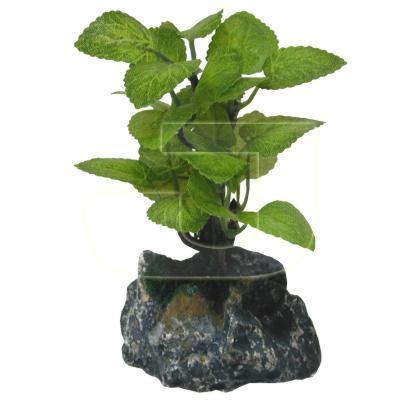 Akvaryum dekorasyonu için 10 cm yüksekliğinde, alt taban 5,5 x 4 cm ebatlarındaolan ipek yapraklı dekoratif bonsai bitki.