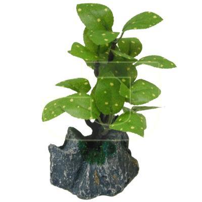 Akvaryum dekorasyonu için 10 cm yüksekliğinde, alt taban 6 x 4 cm ebatlarındaolan ipek yapraklı dekoratif bonsai bitki.